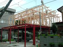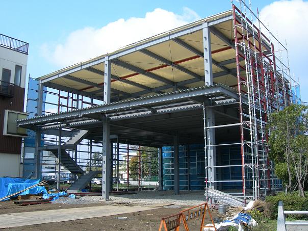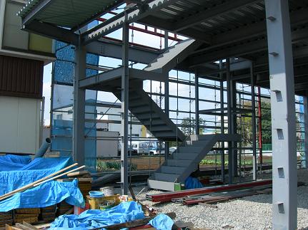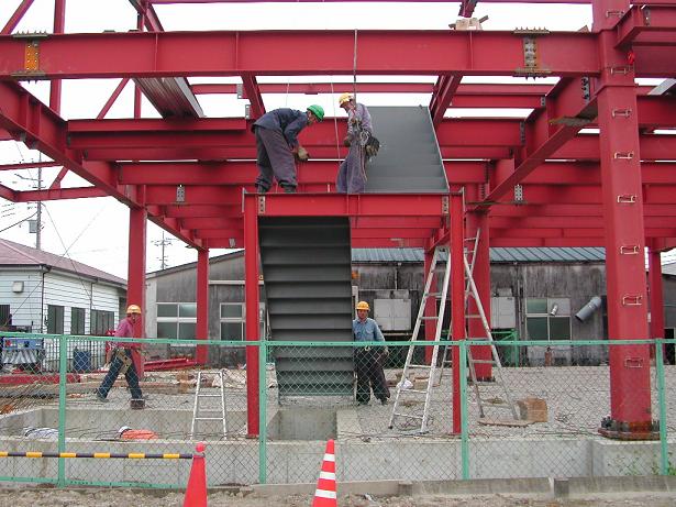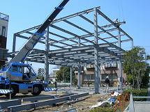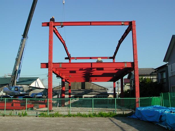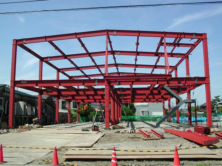 | 平成17年5月7日 鉄骨建て方1西側より |
