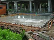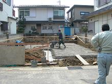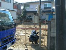 平成17年4月18日 基礎地中梁生コン打中央柱位置 |